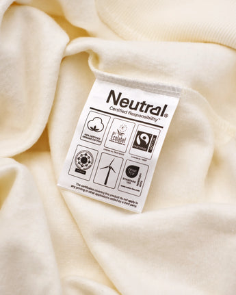Wir verwenden Rohlinge von Neutral®, einem Partner, der entlang der gesamten Lieferkette zertifiziert ist – vom Anbau der Baumwolle bis zum fertigen Kleidungsstück. Produziert wird mit fairen Löhnen, unter sicheren Arbeitsbedingungen, mit erneuerbarer Energie und aufbereitetem Wasser. Die fertigen Textilien sind frei von schädlichen Chemikalien – geprüft von unabhängigen Stellen.