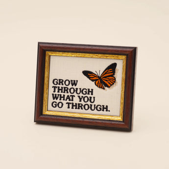 Embroidered saying with a powerful message, lovingly embroidered alongside a delicate butterfly motif. This unique embroidery is not only a decorative decoration for walls or furniture, but also a reminder of self-love and personal growth. A gift that is not only beautiful to look at, but also celebrates change and your own development.