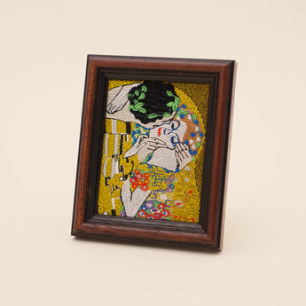 An embroidered work of art that captures a detailed excerpt from The Kiss by Gustav Klimt . An artful eye-catcher that celebrates the sensual beauty of this iconic painting. Perfect as a decorative highlight for your own four walls or as an exquisite gift for art lovers who appreciate the subtle nuances and passion behind Klimt's masterpiece.