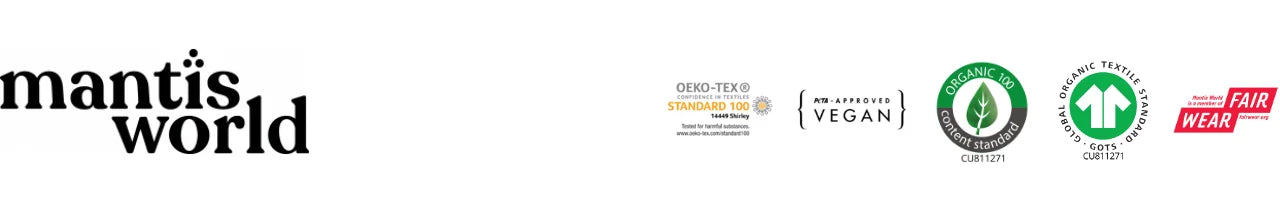 GOTS ensures that organic and ethical practices are followed by farmers at every step of the supply chain. As a standard, it covers both social and environmental factors, making it a valuable certification. All of Mantis World's suppliers, from farm to factory, must be GOTS certified. Each is audited separately, and Mantis World is also certified by Control Union under reference number CU811271.