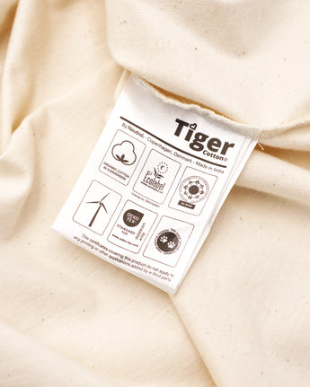To protect biodiversity, people and the planet, Tiger Cotton® is working to convert conventional cotton cultivation to organic. The first Tiger Cotton® farmers lived and worked alongside the great Bengal tiger in Madhya Pradesh, India. Tiger Cotton® is named after them, and the tiger is a symbol of the biodiversity and wildlife that regenerate when a conventional farmer switches to organic farming.
