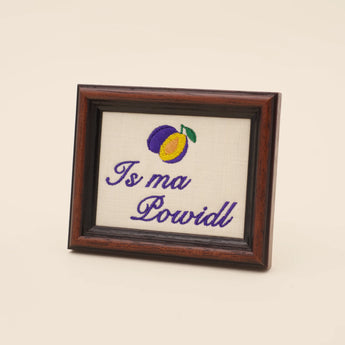 Gestickter österreichischer Spruch: Is ma Powidl, auf Deutsch: Ist mir egal. In einem stilvollen Holzrahmen präsentiert, ist dieses Wohnaccessoire perfekt zum Aufhängen oder Hinstellen und verleiht jedem Raum das gewisse Etwas.